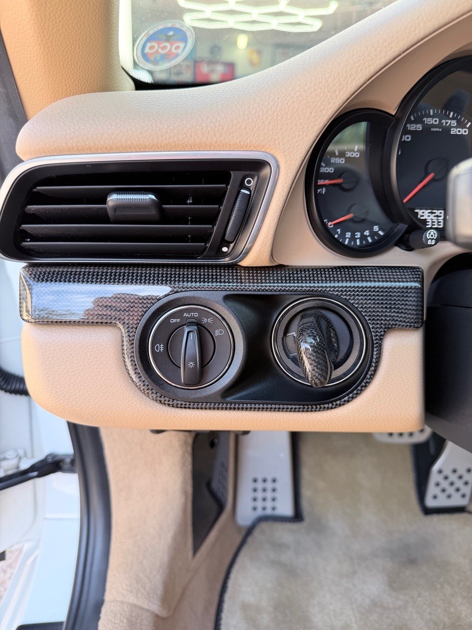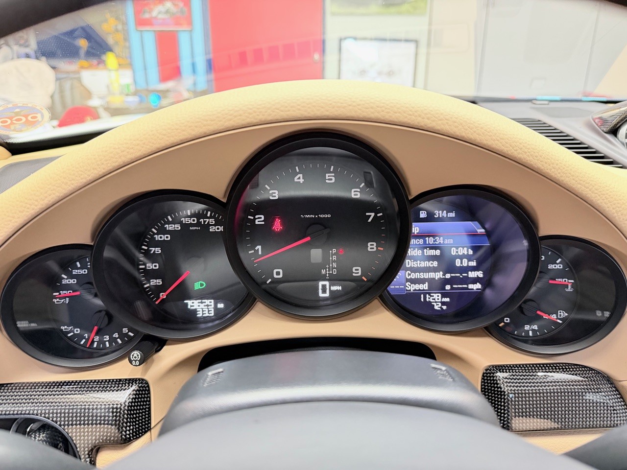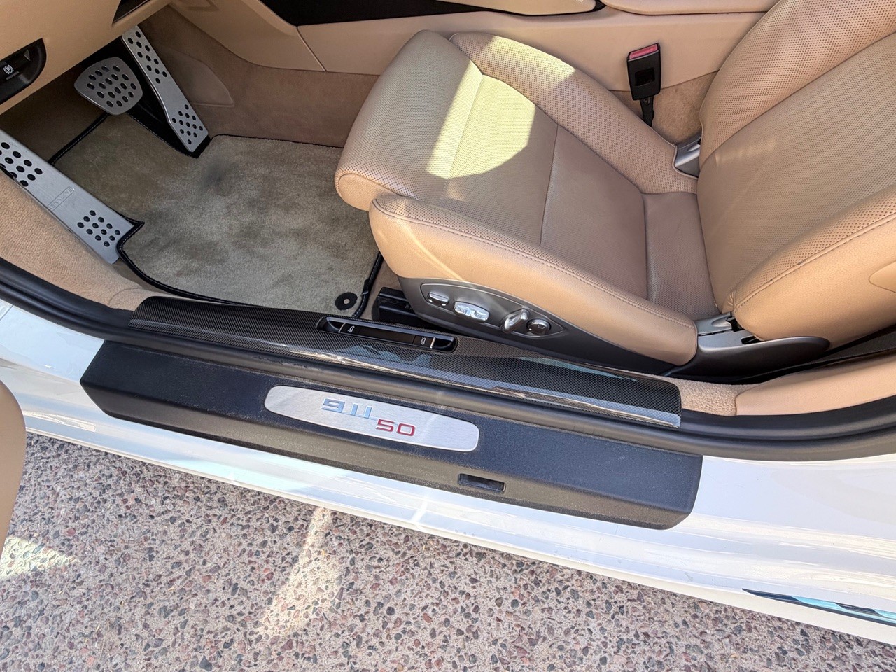 I’m the second owner and have added many pieces, including: OEM Porsche Sports Exhaust with carbon tips, Tech Art lowering springs, Fuchs replica wheels, Martini livery (that can be removed if desired), replacement red cabriolet top (original was worn), Tech Art mirror caps and rear diffuser, replacement OEM headlights with black exterior and interior finish with matching turn signals, radiator grills, 50-year 911 anniversary door sills, various Martini-themed items including indoor car cover, plus outdoor car cover, extensive carbon fiber interior bits from DB Carbon in Germany, including half carbon/leather Sports multifunctional steering wheel.